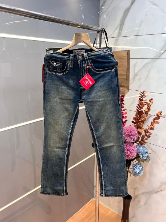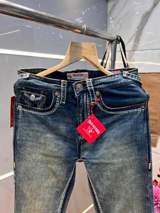 True Religio n Blue Shade Straight fit Premium Imported Stretchable Lycra Fabric Denim with Back Flap pocket Design 3625